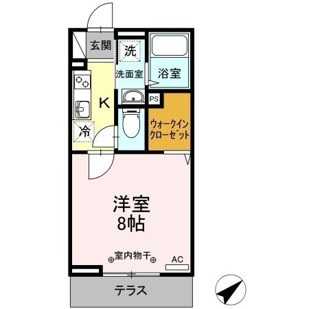 1K(26.71m²)└ 洋室8帖 K2.2帖
