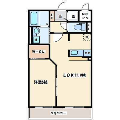 1LDK(43.46m²)└ LDK11.9帖 洋室6帖