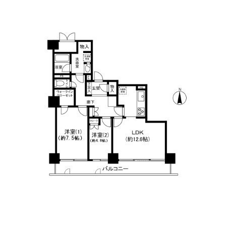 2LDK(67.38m²)└ LDK12.6帖 洋室7.5帖 洋室4.8帖