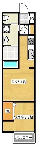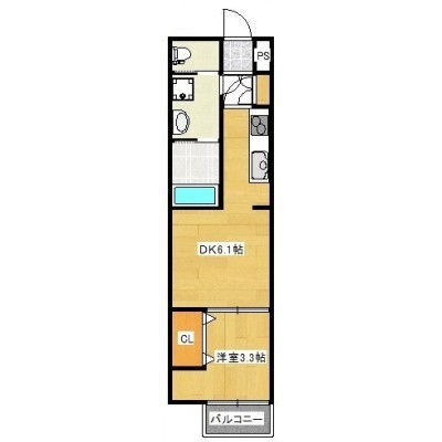 1DK(24.84m²)└ LDK6.1帖 洋室3.3帖