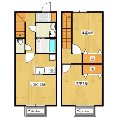 2LDK(59.62m²)└ LDK10帖 洋室7帖 洋室6帖