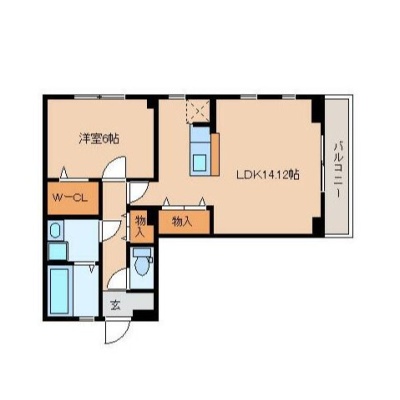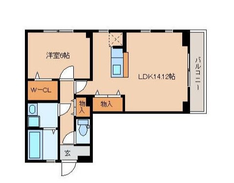 1LDK(50.41m²)└ LDK14.12帖 洋室6帖