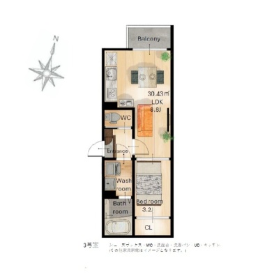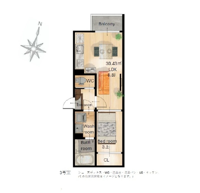 1LDK(30.43m²)└ LDK8.8帖 洋室3.2帖