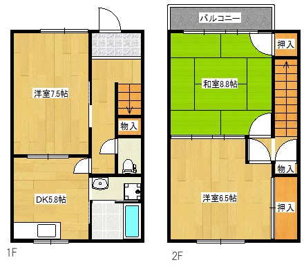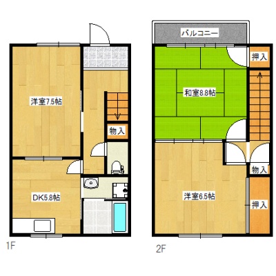 3DK(57.96m²)└ DK5.8帖 洋室7.5帖 和室8.8帖 洋室6.5帖