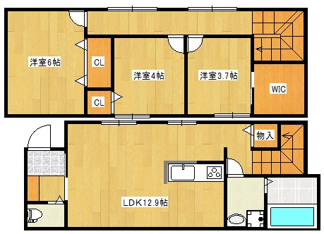 3LDK(72.45m²)└ LDK12.9帖 洋室6帖 洋室4帖 洋室3.7帖