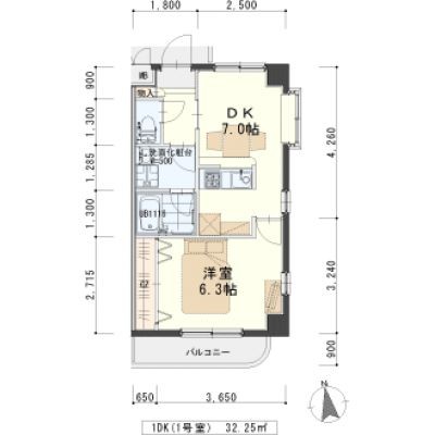 1DK(32.25m²)└ DK7帖 洋室6.4帖