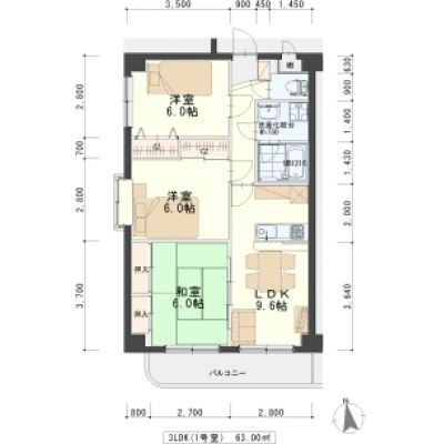 3LDK(63m²)└ LDK9.7帖 洋室6帖 洋室6帖 和室6帖