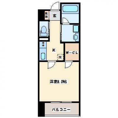 1K(30.08m²)└ 洋室8帖 K2帖
