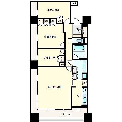 3LDK(90.16m²)└ LDK17.5帖 洋室7.5帖 洋室6帖 洋室5.1帖