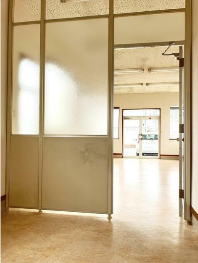 - 前面ガラス張り