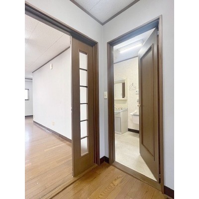 玄関正面が室内、右手がトイレと洗面室