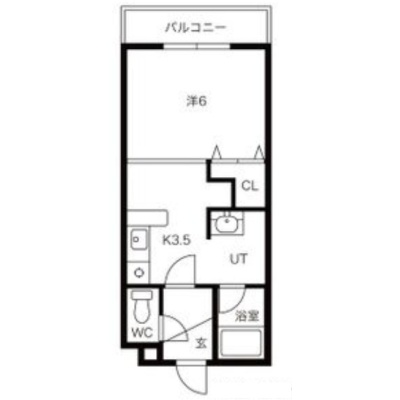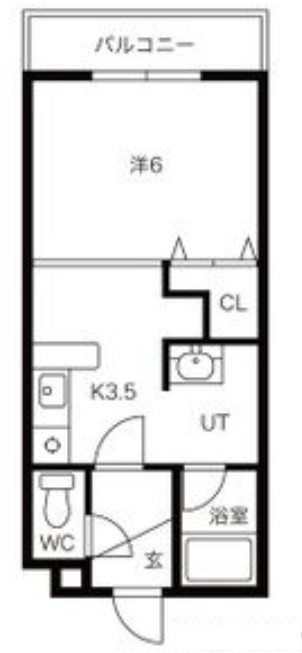 1K(25m²)└ 洋室6帖 K3.5帖