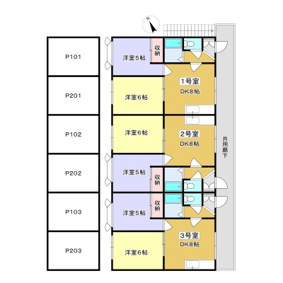 2DK(41.25m²)└ DK8帖 洋室6帖 洋室5帖