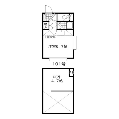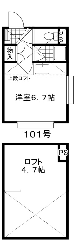 ワンルーム(16.83m²)└ 洋室6.7帖