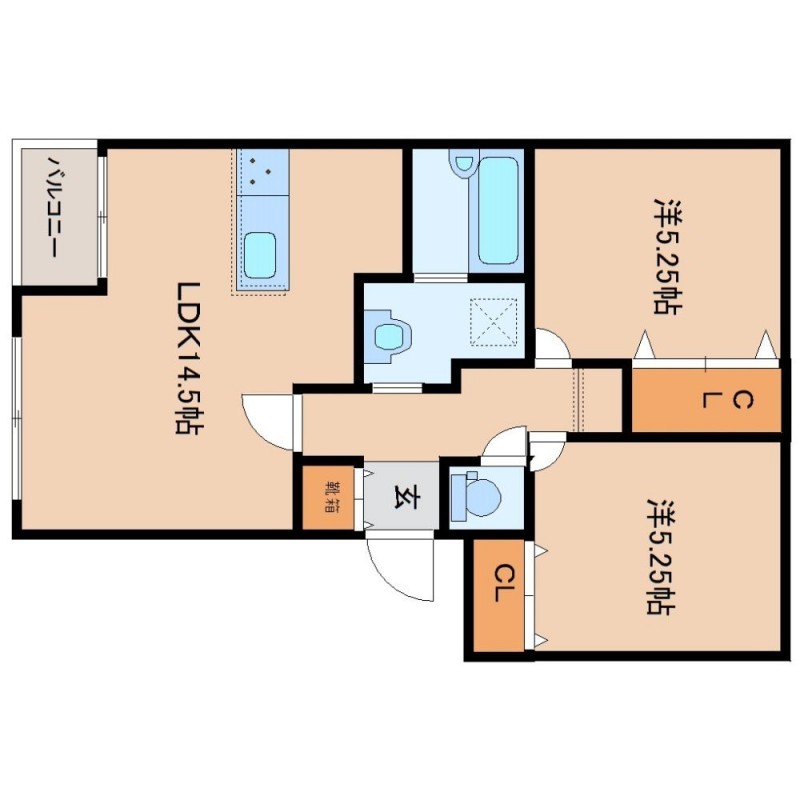 2LDK(55.62m²)└ LDK14.5帖 洋室5.2帖 洋室5.2帖