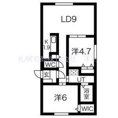 2LDK(50.49m²)└ LD9帖 K1.9帖 洋室6帖 洋室4.7帖