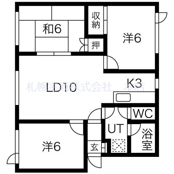 3LDK(57.75m²)└ LD10帖 K3帖 洋室6帖 洋室6帖 和室6帖