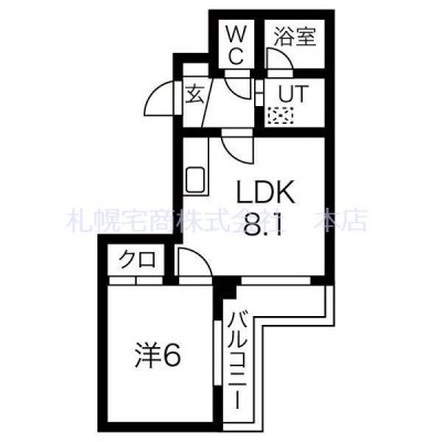 1LDK(32.43m²)└ LDK8.1帖 洋室6帖