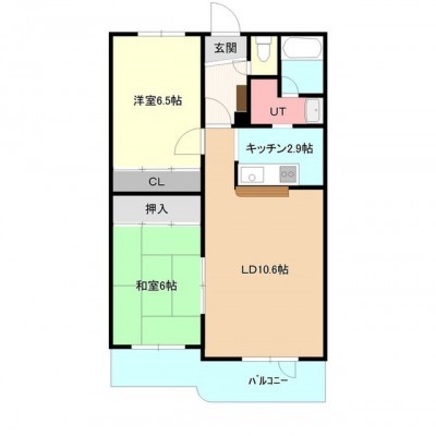 2LDK(57.78m²)└ LD10.6/K2.9/洋6.5/和6