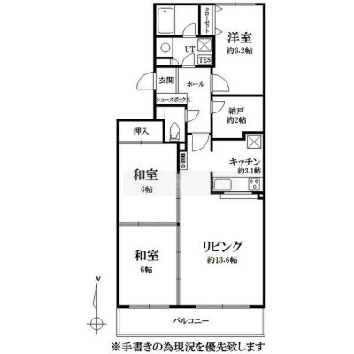 3LDK(76.21m²)└ LD13.6帖 K3.1帖 洋室6.2帖 和室6帖 和室6帖