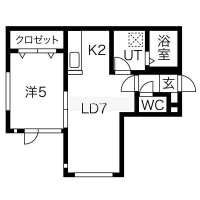 1LDK(32.4m²)└ LD7帖 K2帖 洋室5帖