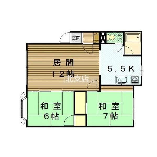 2LDK(55m²)└ LD12帖 K5.5帖 和室6帖 和室6帖