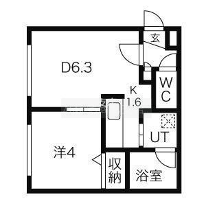 1DK(27.54m²)└ D6.3帖 K1.6帖 洋室4帖