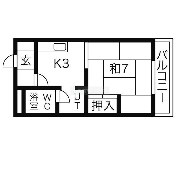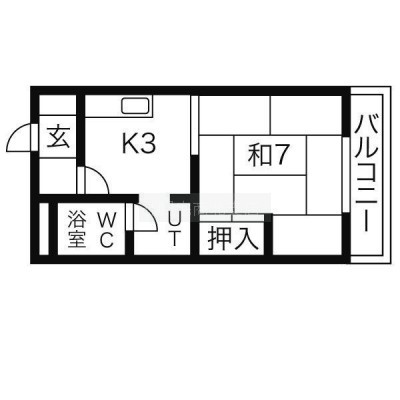 1K(23.14m²)└ 洋室7帖 K3帖