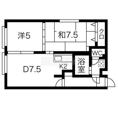2DK(48.36m²)└ D7.5帖 K2帖 洋室5帖 和室7.5帖