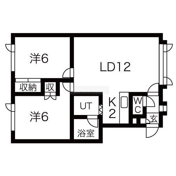 2LDK(51.84m²)└ LD12帖 K2帖 洋室6帖 洋室6帖