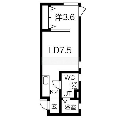 1LDK(29.61m²)└ LD7.5帖 K2帖 洋室3.6帖