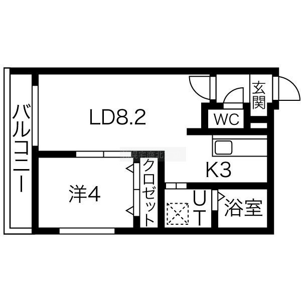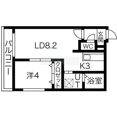 1LDK(34.56m²)└ LD8.2帖 K3帖 洋室4帖