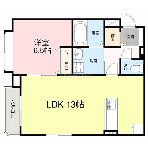 1LDK(46.25m²)└ LDK13帖 洋室6.5帖