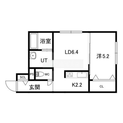 1LDK(34.31m²)└ LD6.4帖 K2.2帖 洋室5.2帖