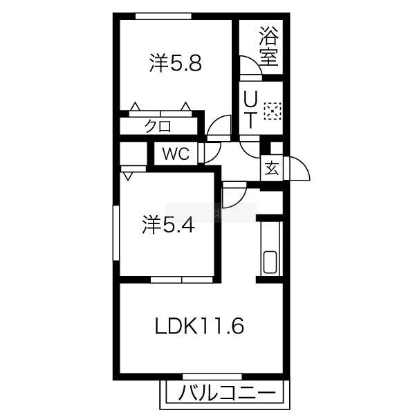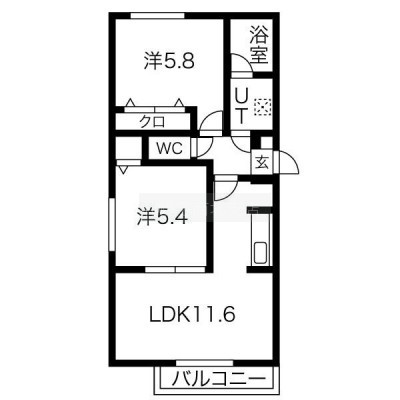 2LDK(48.38m²)└ LDK11.6帖 洋室5.8帖 洋室5.4帖