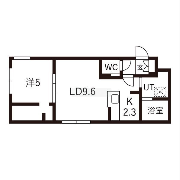 1LDK(40.24m²)└ LD9.6帖 K2.3帖 洋室5帖
