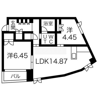 2LDK(59.27m²)└ LDK14.87帖 洋室6.45帖 洋室4.45帖