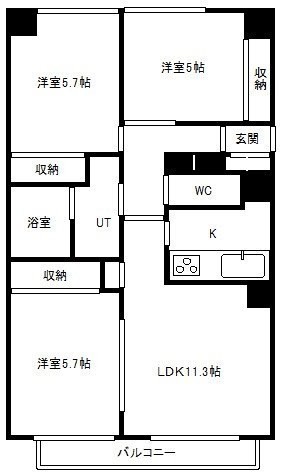 3LDK(61.14m²)└ 3階:LDK11.3帖 和室6帖 洋室5.7帖 洋室5帖
