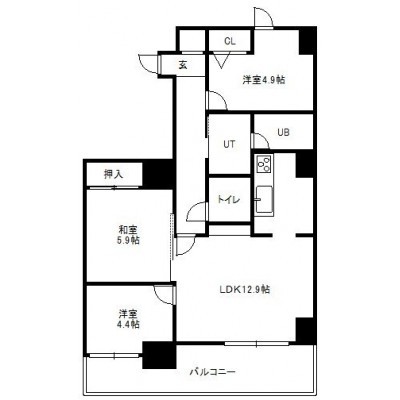 3LDK(62.73m²)└ 2階:LDK12.9帖 洋室4.9帖 洋室4.4帖 和室5.9帖