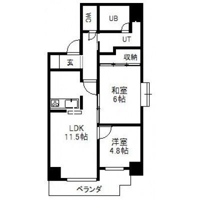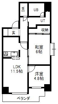 2LDK(51.54m²)└ 5階:LDK11.5帖 洋室4.8帖 和室6帖