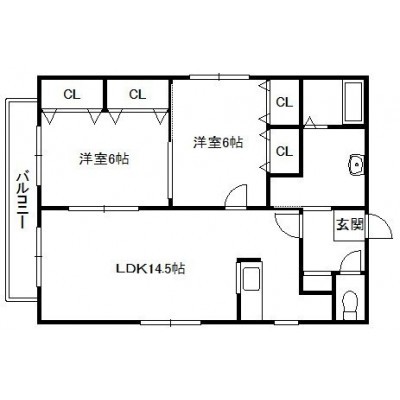 2LDK(57.4m²)└ 4階:LDK14.5帖 洋室6帖 洋室6帖