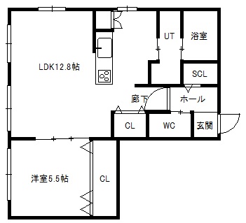1LDK(47.03m²)└ LDK12.8帖 洋室5.5帖