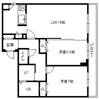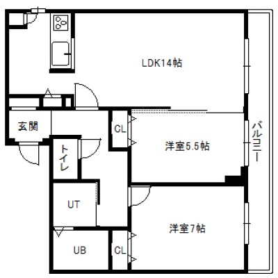 2LDK(59.01m²)└ 1階:LDK14帖 洋室7帖 洋室5.55帖