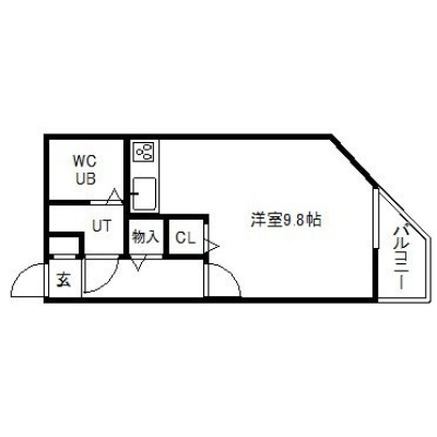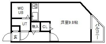 ワンルーム(25m²)└ 1階:洋室9.8帖