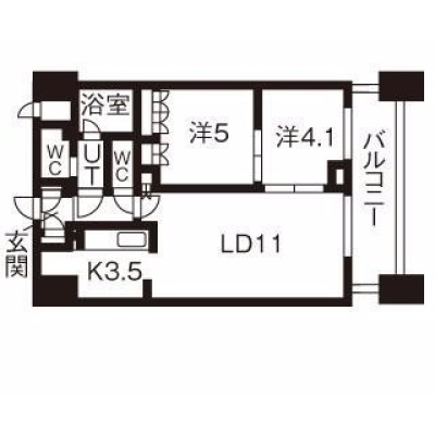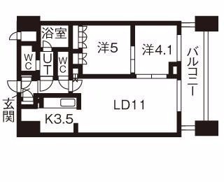 2LDK(51.54m²)└ 14階:LD11.2帖 洋室5帖 洋室4.1帖