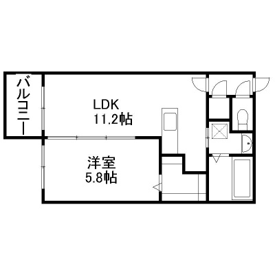 1LDK(38.12m²)└ 5階:LDK11.2帖 洋室5.8帖