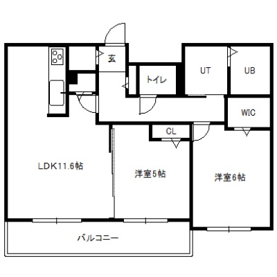 2LDK(54.21m²)└ 1階:LDK11.6帖 洋室6帖 洋室5帖