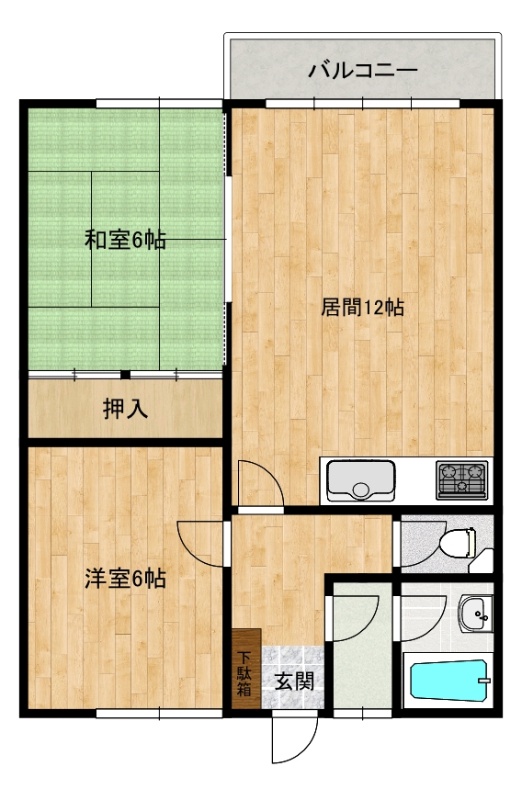 2DK(52.07m²)└ 2階:DK / 12/6/6