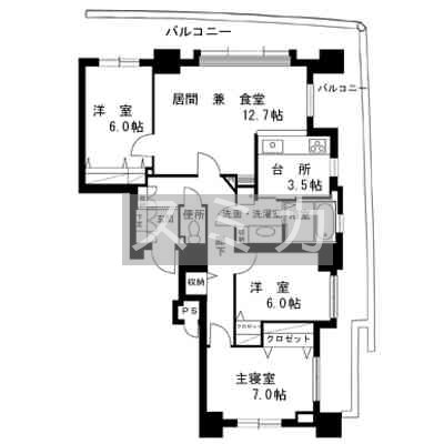 3LDK(85.46m²)└ LD12.7帖 K3.5帖 洋室6帖 洋室6帖 洋室7帖 / 12.7LD/3.5K/7/6/6