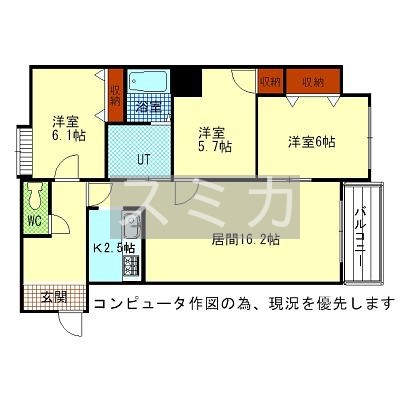 3LDK(74.16m²)└ LD16.2帖 K2.5帖 洋室6.1帖 洋室6帖 洋室5.7帖 / LD16.2/2.5K/6.1/6/5.7
